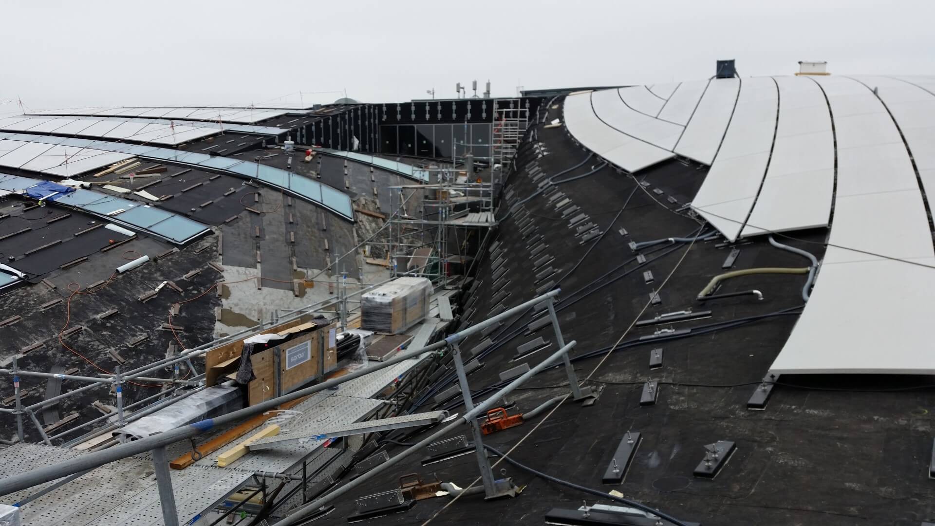 De nieuwbouw bestaat uit een golvende betonnen onderconstructie, gedragen door duizenden poeren die zowel de gebogen dakvorm als de lichtdoorlatende delen ondersteunen. Op deze constructie bracht BOKO een bitumen dampremmer aan, gevolgd door Betopor-isolatie, een bitumen tussenlaag en een toplaag van Resitrix MB – een duurzame oplossing die geschikt is voor de complexe vormen van het gebouw.